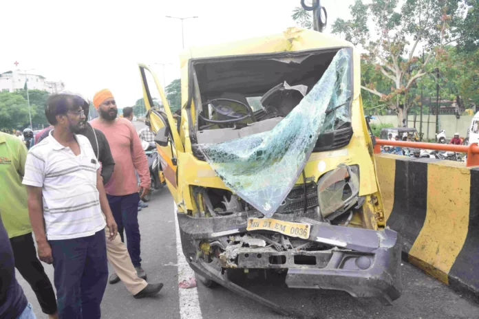 Nagpur News. मानकापुर उड़ान पुल पर शुक्रवार सुबह भीषण सड़क हादसा हुआ। दो स्कूली वाहन आमने-सामने टकरा गए, जिसमें वैन चालक और एक छात्रा की मौत हो गई। वैन में सवार नौ बच्चे घायल हो गए, जिनमें तीन की हालत गंभीर है। दूसरी बस में बच्चे सवार नहीं थे। बस चालक और दो परिचालिकाओं को मामूली चोटें आई हैं। कैसे हुआ हादसा यह दुर्घटना सुबह करीब 8:30 बजे की है। कोराड़ी स्थित भवन्स स्कूल के छात्र वैन (एमएच-31 ईएम-0036) से स्कूल जा रहे थे।